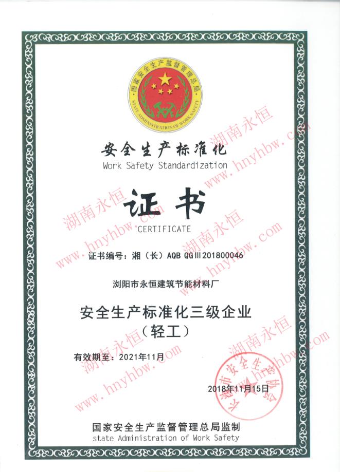 热烈祝贺湖南永恒通过ISO国际认证体系!发表时间:2019-01-26 14:22 热烈庆祝我公司顺利通过GB/T 50430:2007《工程建设施工企业质量管理规范》、“ISO9001:2015《质量管理体系》” 我公司浏阳厂通过“安全生产标准化三级企业”、“ISO9001:2015《质量管理体系》”、“ISO14001:2015《环境管理体系》”、“OHSAS 18001:2017全称《职业健康安全管理体系》”,这标志着我司已步入规范化、标准化、科学化的现代企业管理轨道。
